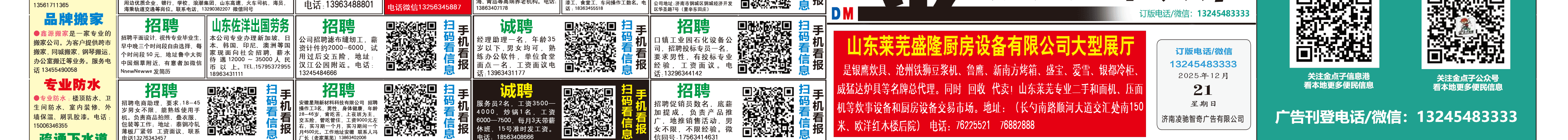 《萊蕪金點(diǎn)子廣告》報(bào)紙12月21日三、四版 http://www.bic34m.cn 發(fā)布日期:2025/12/21 9:41:19 文章作者:萊蕪金點(diǎn)子信息港